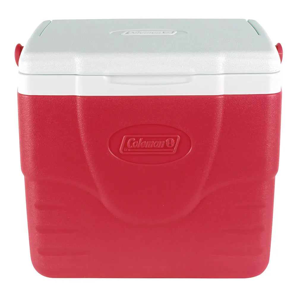 A Caixa Térmica Coleman 9QT possui alça confortável para facilitar o transporte, com tampa articulada.
